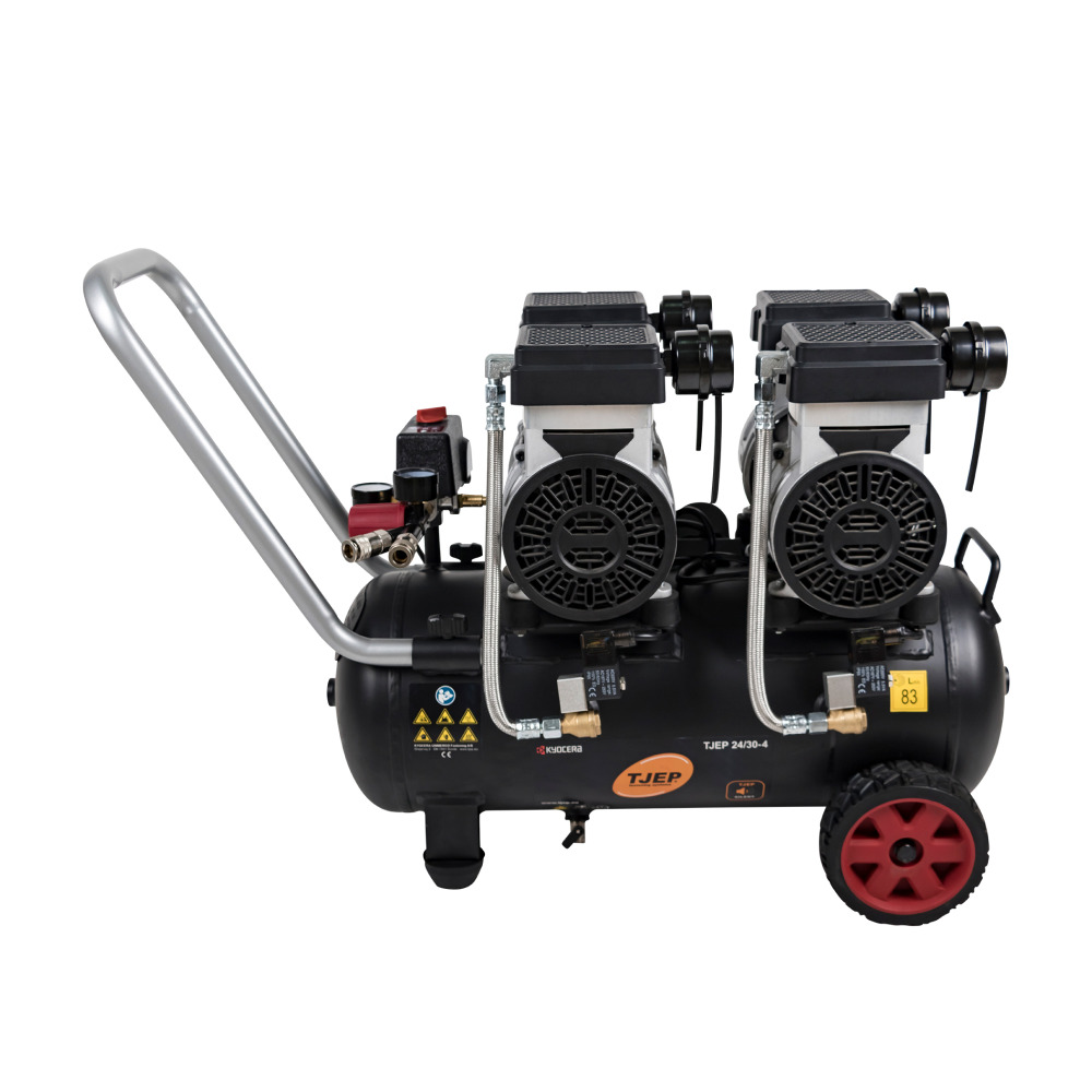 W nowoczesnej serii TJEP Silent – absolutnie nie. Zastosowane materiały samosmarne o wysokiej jakości zapewniają taką samą trwałość jak w modelach olejowych, eliminując jednocześnie konieczność pilnowania poziomu oleju i ryzyko wycieków podczas transportu (kompresor może leżeć w aucie).