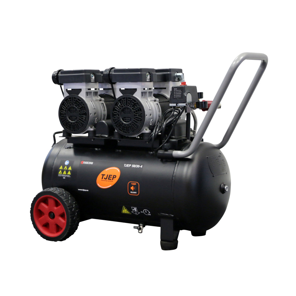 Maksymalny zapas powietrza w absolutnej ciszy. TJEP 50/30-4 Silent to flagowy model sprężarki bezolejowej, wyposażony w potężny 50-litrowy zbiornik i 4-cylindrową pompę. Zaprojektowany dla dużych ekip budowlanych, gdzie liczy się stałe ciśnienie, duża pojemność i komfort akustyczny (tylko 68 dB). To serce Twojego systemu pneumatycznego.