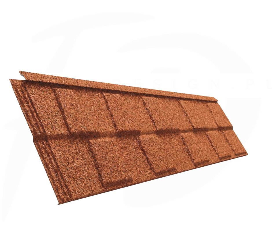 Kolor ???? Ceglany Jaspis to doskonały wybór dla osób ceniących tradycyjny wygląd dachów, idealnie komponujący się z elewacjami w stylu klasycznym, rustykalnym i nowoczesnym. Jego ciepły, ceglasty odcień nadaje budynkowi elegancji i naturalnego charakteru.